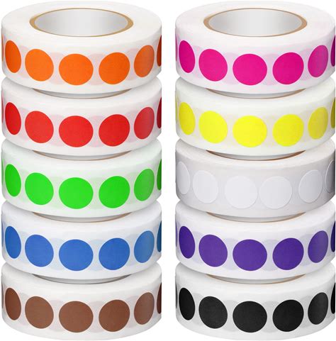 5000 Pieces 1/2 Inch Round Color Coding Labels Roll Assorted Colored Dot Stickers Adhesive Solid Colors Circle Stickers For Inventory Organize, File