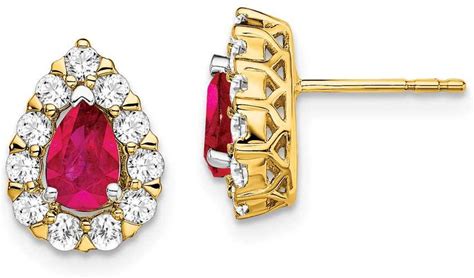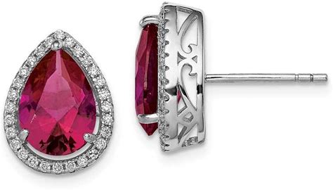 Womens 14mm Sterling Silver Rhodium-Plated Polished Clear CZ And Lab Created Ruby Pear Post Earrings