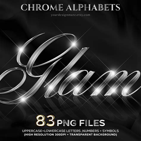 Chrome Script Alphabet PNG, Luxury Metallic Letters, Shiny Silver Font, Cursive Chrome Letters, Digital Alphabet PNG Files, 300 DPI 117