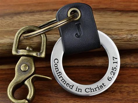 Confirmation Gifts For Teen Boys, Personalized Confirmation Leather Keychain Gift - Any Text Up To 40 Char
