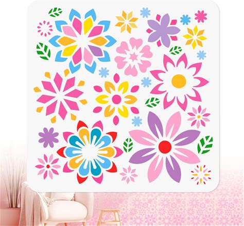 DOODLREAM Geometric Flower Stencil For Painting, 11.8"X11.8" Reusable Splicing Floral Stencil Drawing Template, DIY Craft Paint Template For Wall Home