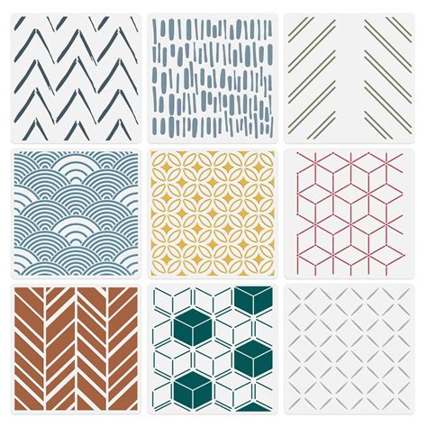 9Pcs Modern Geometric Wall Stencil Templates 11.8 X 11.8 Inch Reusable Plastic Simple Style Stencils For Painting On Wood Wall Floor Tile Fabric Glass