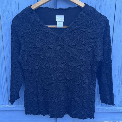 Haystack Small Black Ruched Textured Top Stretchy Women's 3/4 Sleeves