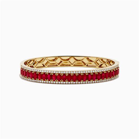 Effy Jewelry 14K Yellow Gold Natural Ruby And Diamond Bangle, 3.60 TCW