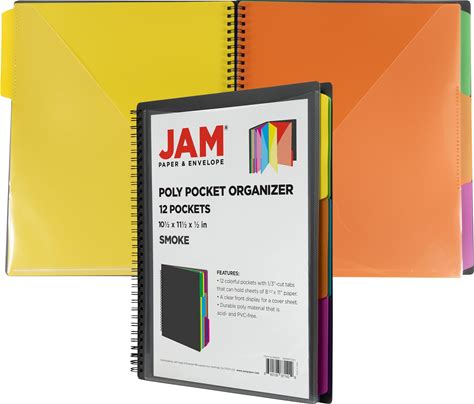 JAM PAPER Plastic Multi Pocket Folder - 12 Pocket Organizer With Zipper Pouch - Smoke Grey With Colorful Tabs - 10 1/2 X 11 1/2 - Sold Individually