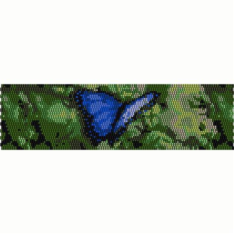 Blue Butterfly Peyote Bead Pattern, Bracelet Cuff, Seed Beading Pattern Miyuki Delica Size 11 Beads - PDF Instant Download