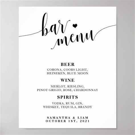 Elegant Script Wedding Drinks Bar Menu Poster