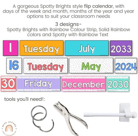 Flip Calendar | Spotty Brights Classroom Decor | Rainbow Themed | Editable