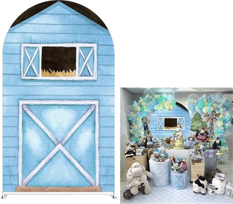 BELECO 8x6ft Fabric Cartoon Farm Barn Backdrop Red Barn Tractor Haystack Farmhouse Background Farm Theme Party Decorations Kids Children Birthday