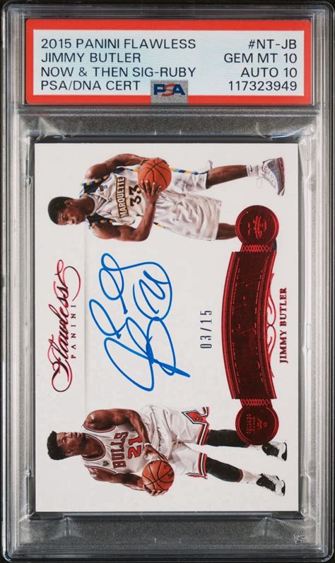 2015/16 Panini Flawless Jimmy Butler Now & Then Auto Ruby /15 PSA 10 Auto 10
