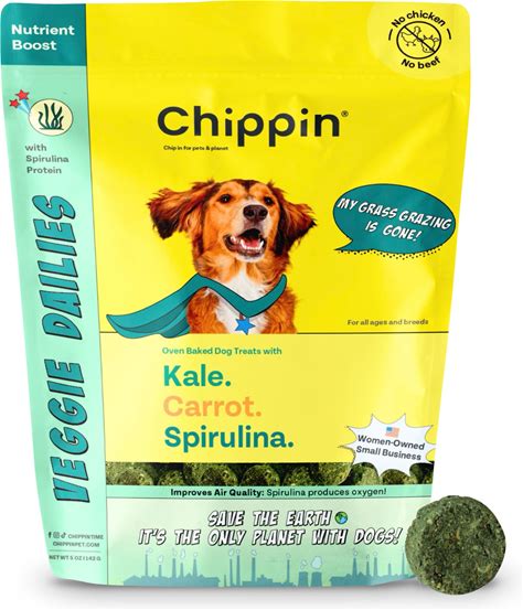 Chippin Vegan Crunchy Veggie Dailies, Spirulina, Kale & Carrot Oven Baked Dog Treat, 5-Oz Bag