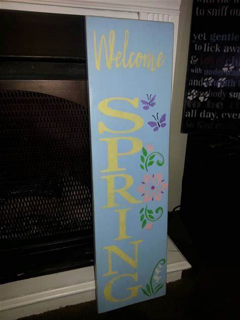 Spring Vertical Porch Sign Welcome Spring Reversible Wood Sign Distressed Wood Large Sign Patio Decor Rustic Primitive Decor Spring Flowers