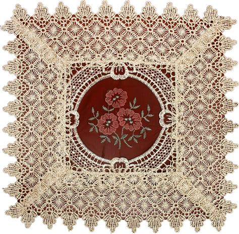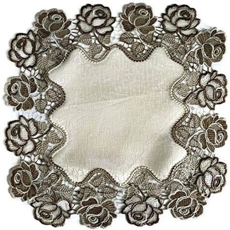 Doily Boutique Place Mat Or Doily Square With Cocoa And Antique White Lace Roses On Antique Material, Size 16 Inches