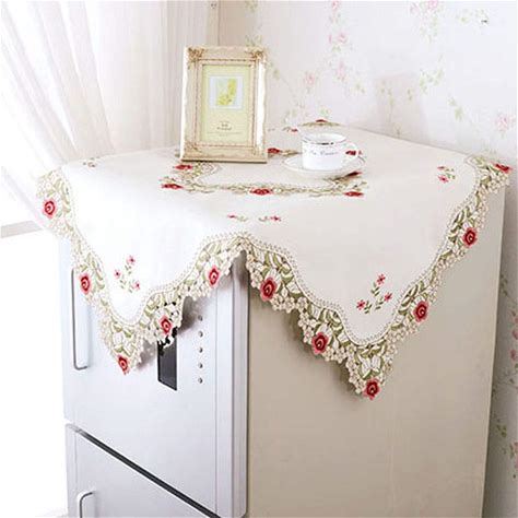 WELLYUK 33 Inch Square Vintage Embroidered Rose Red Flower Tablecloth, Classic Lace Cabinet Dining Room Home Decoration Doily Table Cloth Cover