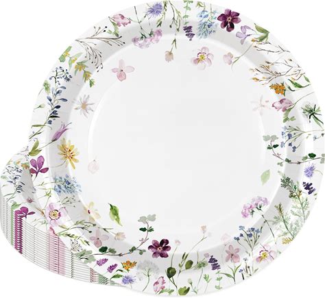 Jarthenaamcs 50 Pcs Spring Floral Paper Plates Watercolor Wildflower Disposable Plates 9 Inch Flower Dessert Plate For Wedding Birthday Baby Shower