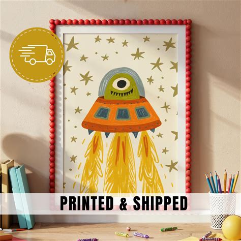 Whimsical Alien UFO Nursery Wall Art Printable Space Illustration For Kids Room Playroom Decor Toddler Wall Art Baby Shower Gift | 100