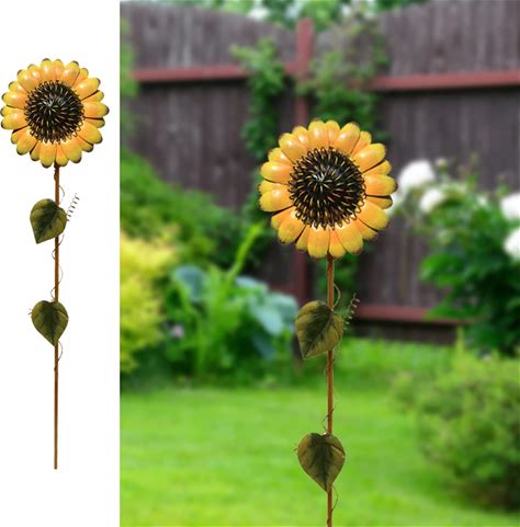 Flower Garden Stakes Metal Spring Yard Sign Decorative Sunflower Plant Stake Lawn Art Patio Decor Pathway Ornaments Indoor Outdoor Decoration (22" H)