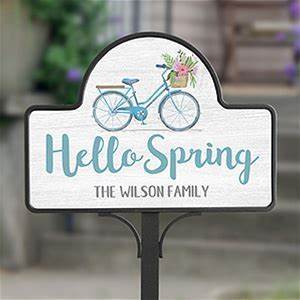 0 Personalized Hello Spring Garden Sign - Floral Bicycle