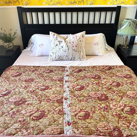 Boutis Antique Flowers Quilted Blanket Plaid Handmade Fabric Fabric Quilt