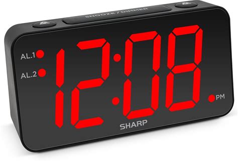 Sharp Dual Alarm Clock With Jumbo Easy To Read 1.8 White LED Display, Black Case