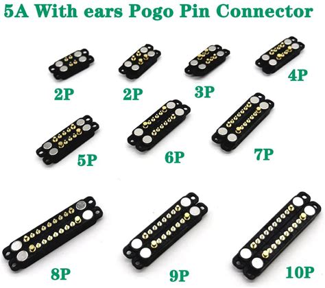 6 Pairs Spring Loaded Magnetic Pogo Pin Connector 3 Positions Magnets Pitch 2.3mm Through Holes Male