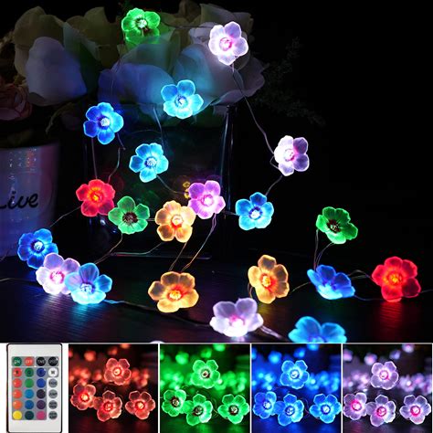 Multicolor Cherry Blossom Flower String Lights, 40LED RGB Flower Light 16 Colors 13ft Fairy Lights USB And Battery Operated With Remote Control,