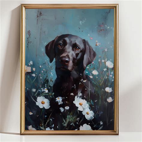 Chocolate Labrador Wall Art Print, Labrador Retriever Dog Portrait With Flowers, Lab Lover Gift Decor