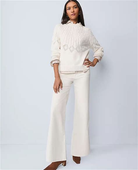 Ann Taylor Weekend Collection Wide-Leg Corduroy Pant Size 6 Winter White Women's