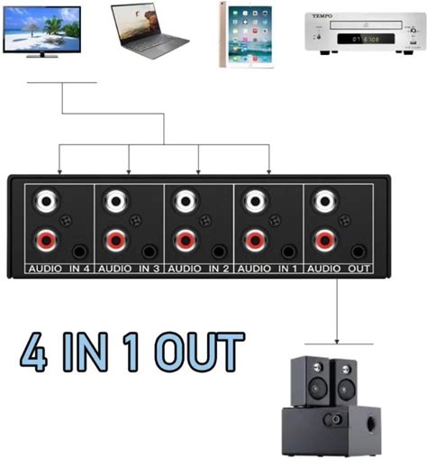 2-Way Stereo RCA Audio Switch Box Selector For Amplifier, Hifi, Home Theater, 4-In 1-Out, 3-In 3-Out