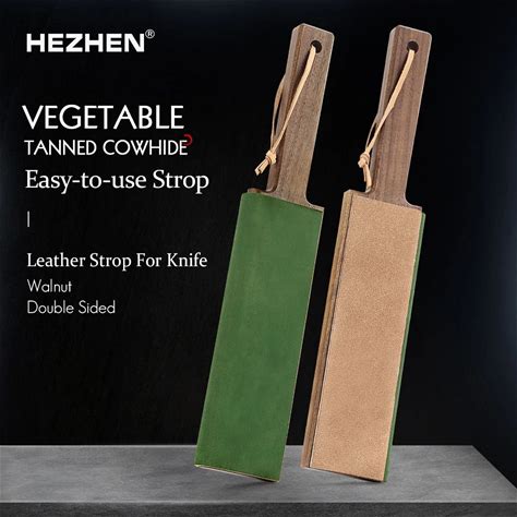 HEZHEN Double Sided Leather Sharpener Vegetable Tanned Cowhide Wooden Handles Stropping Block Polish