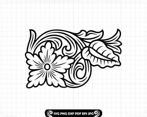 Floral Carving Pattern 6 SVG PNG DXF, Ornamental Scrollwork Flower Leaf Cut File, Decorative Corner Design For Cricut Laser