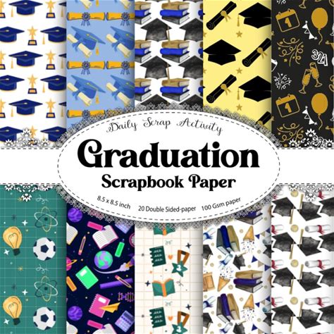 Gradution Scrapbook Paper: Graduation Cap Pattern Themed Scrapbooking Paper, Junk Journal, Double Sided Decorative Craft Paper For Gift Wrapping, ...