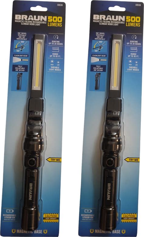 500 Lumen LED Rechargeable Magnetic Handheld Foldable Slim Bar Work Light - Compatible With Braun - 2 Pack