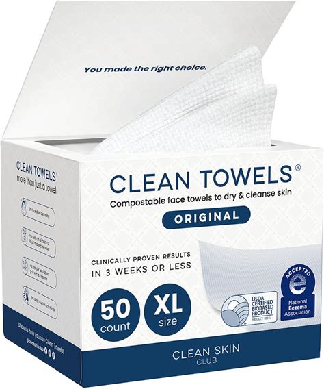 Clean Skin Club Clean Towels XL®, 100% USDA Biobased Face Towel, Disposable Face Towelette, Eczema Association Accepted, Makeup Remover Dry Wipes,