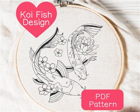Koi Fish Embroidery Pattern, PDF Download Hand Embroidery, Summer Craft Ideas, Beginner Embroidery Tutorial, Enchanted Koi Fish, Maggie Jo