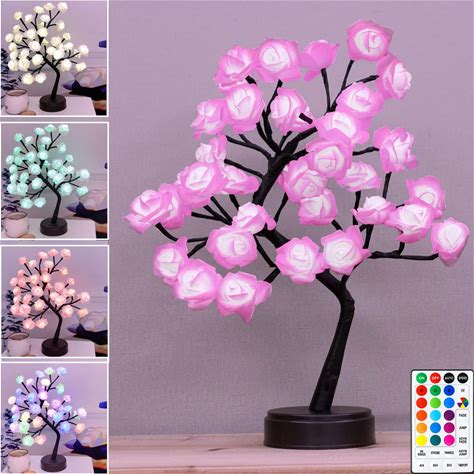 18 Colors Rose Tree Lamp, Color Changing Multicolor Rose Table Lamp With Remote, Pink Flower Lamp Girls Gift For Mothers Day, Lighted Tabletop Tree