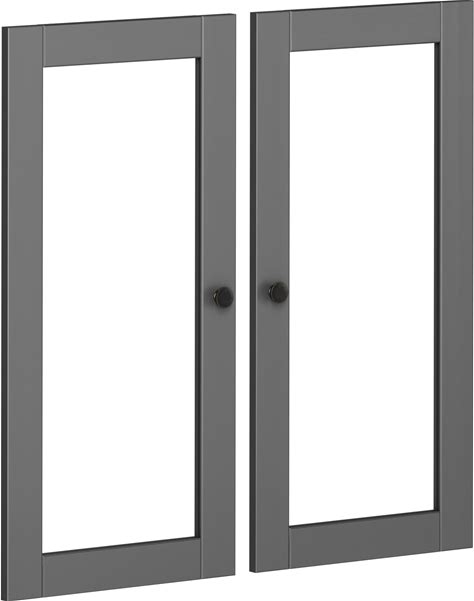 Palace Imports 100% Solid Wood Modular Kitchen Pantry Double Door Kit - Set Of 2 - Gray-Glass