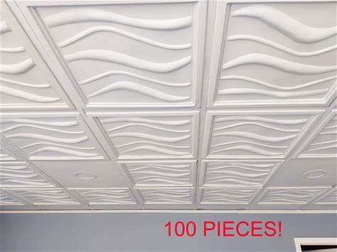 Grid System, Pop In, 24"" X 24"", 3D, PVC, Ceiling Tiles, Wave White, 100 Pieces!