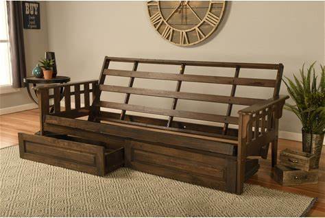 Somette Tucson Full Size Futon Set In Rustic Walnut Finish With Leather Mattress - Oregon Trail Java