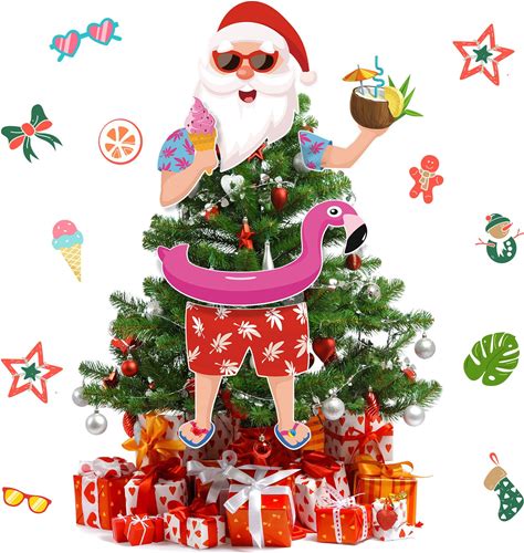 Watersay Christmas Tree Topper Hawaii Christmas Decoration Santa Claus Tree Topper Flamingo Ice Cream Coconut Head Arms And Legs Xmas Ornament Decor