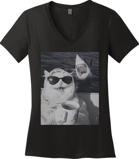 Cat Scarf Meme Drinking Coffee Selfie Chill Explosive Comet Women's V-Neck T-Shirt