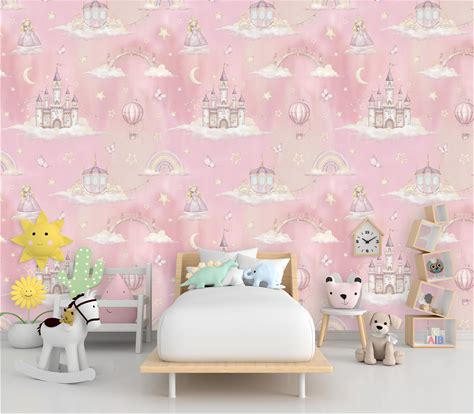 Princess Castle Wallpaper: Pink Carriage & Bridge, Peel And Stick