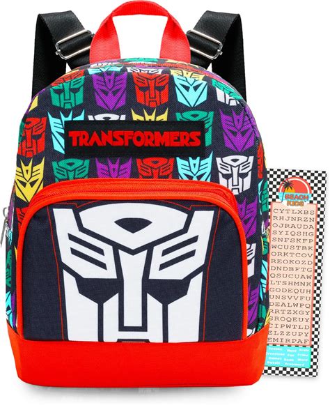 Transformers Mini Backpack - 10" Exclusive Woven Small Backpack With Front Pocket And Bookmark Bundle | Adjusts To Fit Adults, Teens, Boys, Kids