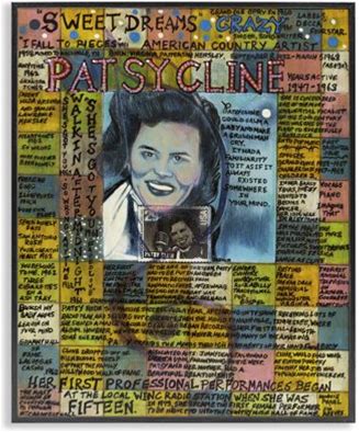 Stupell Industries Patsy Cline Collage People Drawing Wrapped Canvas Art Print Wall Art, 36 X 48