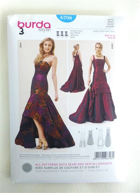 Burda 6708 Sewing Pattern: Misses Formal Gown, Bridal Option, Sizes 8-18 Uncut