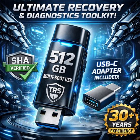 512GB Professional Multi-Boot Recovery USB SHA Verified USB-C Adapter. TRS Tool. Black. USB Flash Drives.