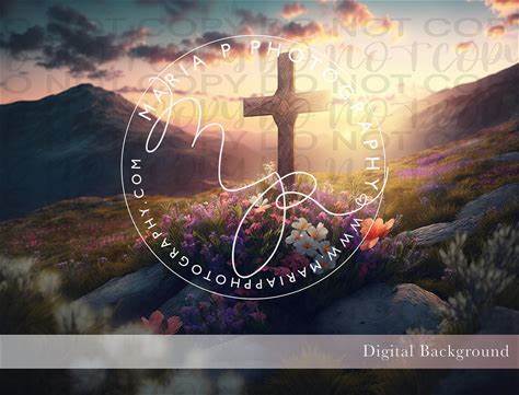 Easter Cross On Mountain Digital Backgrounds Bundle, Cinematic, Spring Flowers, Digital Painting, Stunning, Photoshop, Instant Download