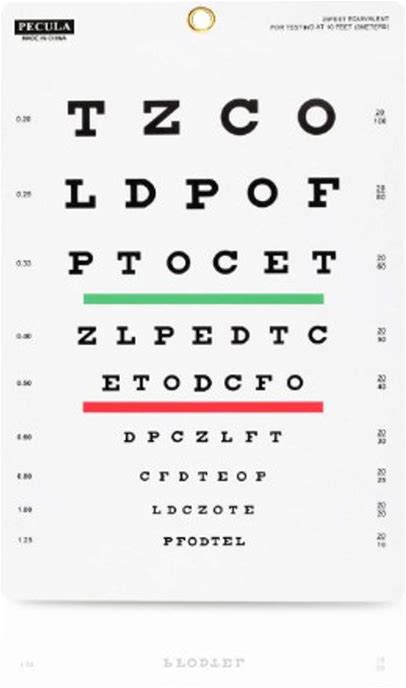 Snellen Eye Chart Red Green Lines 10 Feet Visual Acuity Range Eyes Vision Test