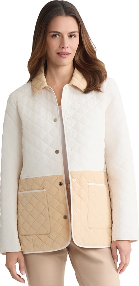 Jones New York Women's Colorblock Button-Front Quilted Jacket - Jones White/Cafe Au Lait - Size L