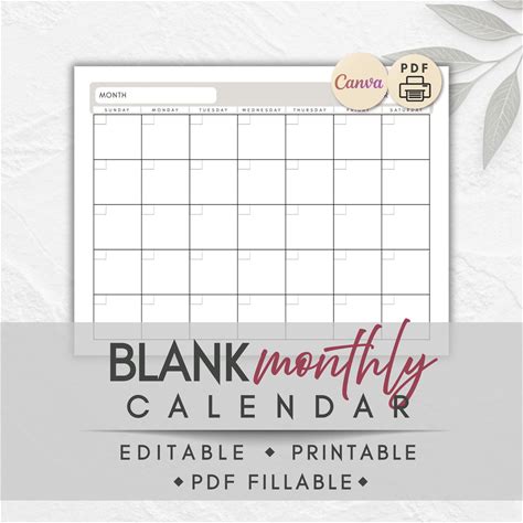 2026 Canva Calendar Template, Editable Monthly Calendar, Printable Digital Planner, Instant Download